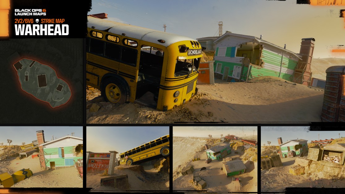 Warhead delivers fast and chaotic gameplay in a bombed-out neighborhood reminiscent of Nuketown. With upturned signs, debris, and wrecked vehicles scattered throughout, players must use every piece of cover to outsmart their enemies. The map’s small size and close-quarters layout make it a favorite for quick, intense matches.