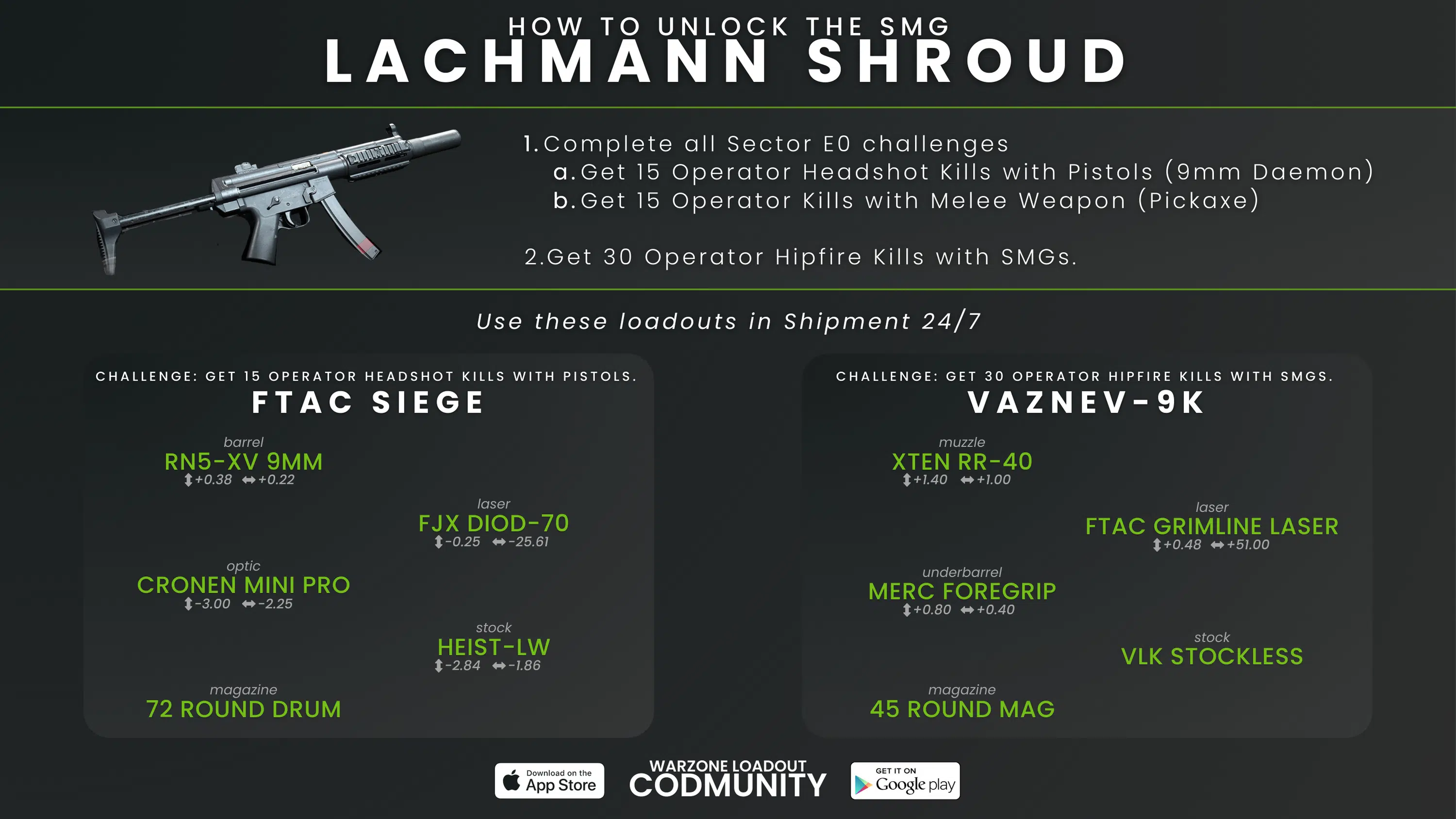 Unlocking the Lachmann Shroud SMG in Warzone and MWII is a rewarding experience. By completing the Sector E0 challenges and getting 30 Operator Hipfire Kills with SMGs, you’ll add this powerful weapon to your arsenal. The recommended loadouts, FTAC Siege and Vaznev-9k, will help you breeze through these challenges.